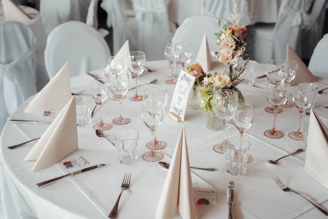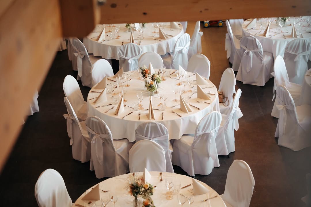 Ein sehr wichtiger Punkt für uns ist, dass Sie sich um nichts mehr kümmern müssen. Neben dem Catering-Service befindet sich alles, was zum Feiern benötigt wird, im Festsaal. Ob Tische und Stühle, Stehtische und Barhocker, Tischdecken, Dekoration, Musikanlage für Hintergrundmusik, Porzellan und Gläser; unsere Kunden sollen und können Ihr Fest ohne Stress genießen.